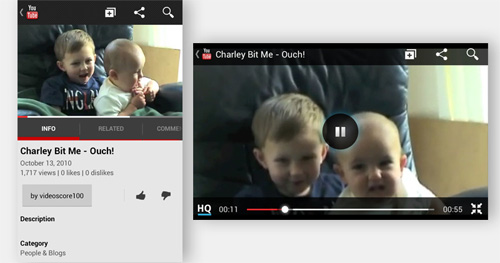 兩種顯示模式當中都要包含這個切換按鈕。用戶點擊之后,顯示模式自動切換,雖然接下來用戶未必會真正調(diào)轉(zhuǎn)設備進行查看,但他們通過這種方式了解了應用所提供的兩種顯示模式,將來會逐漸的在需要的時候自行調(diào)轉(zhuǎn)設備,不再需要按鈕的輔助。所以該按鈕即可以觸發(fā)切換功能,同時也可以作為視覺提示。