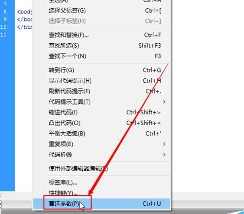 然后再彈出的下拉菜單中選擇“首選參數(shù)”這個(gè)菜單選項(xiàng)。