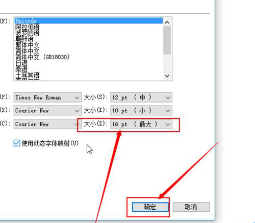 如圖所示,在”代碼視圖“這一欄里面有字體大小。然后把字體大小調(diào)整到16個(gè)像素,再點(diǎn)擊下邊的”確定”按鈕。