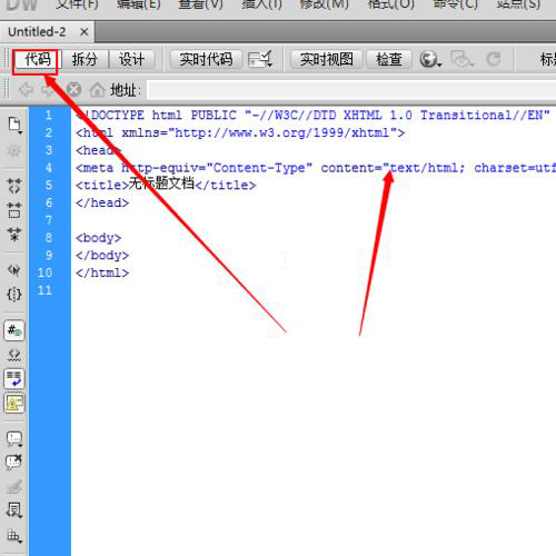 首先,我們打開我們的dreamweaver軟件,在“代碼”視圖中,可以看到代碼比較小。