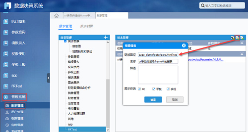 就可以在右側(cè)網(wǎng)頁(yè)的iframe中顯示出報(bào)表包括傳遞給網(wǎng)頁(yè)的參數(shù)。