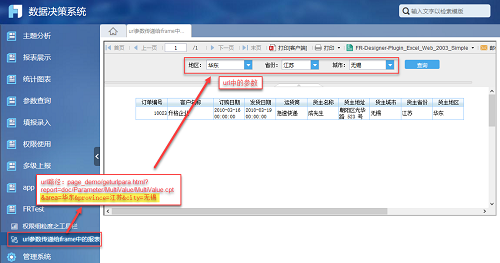 江蘇&city=無(wú)錫,名稱為:url參數(shù)傳遞給iframe中的報(bào)表,如下圖: